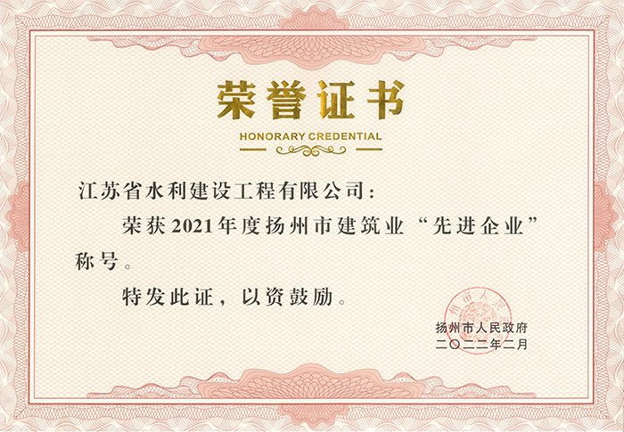 2021揚州市建筑業(yè)先進企業(yè)